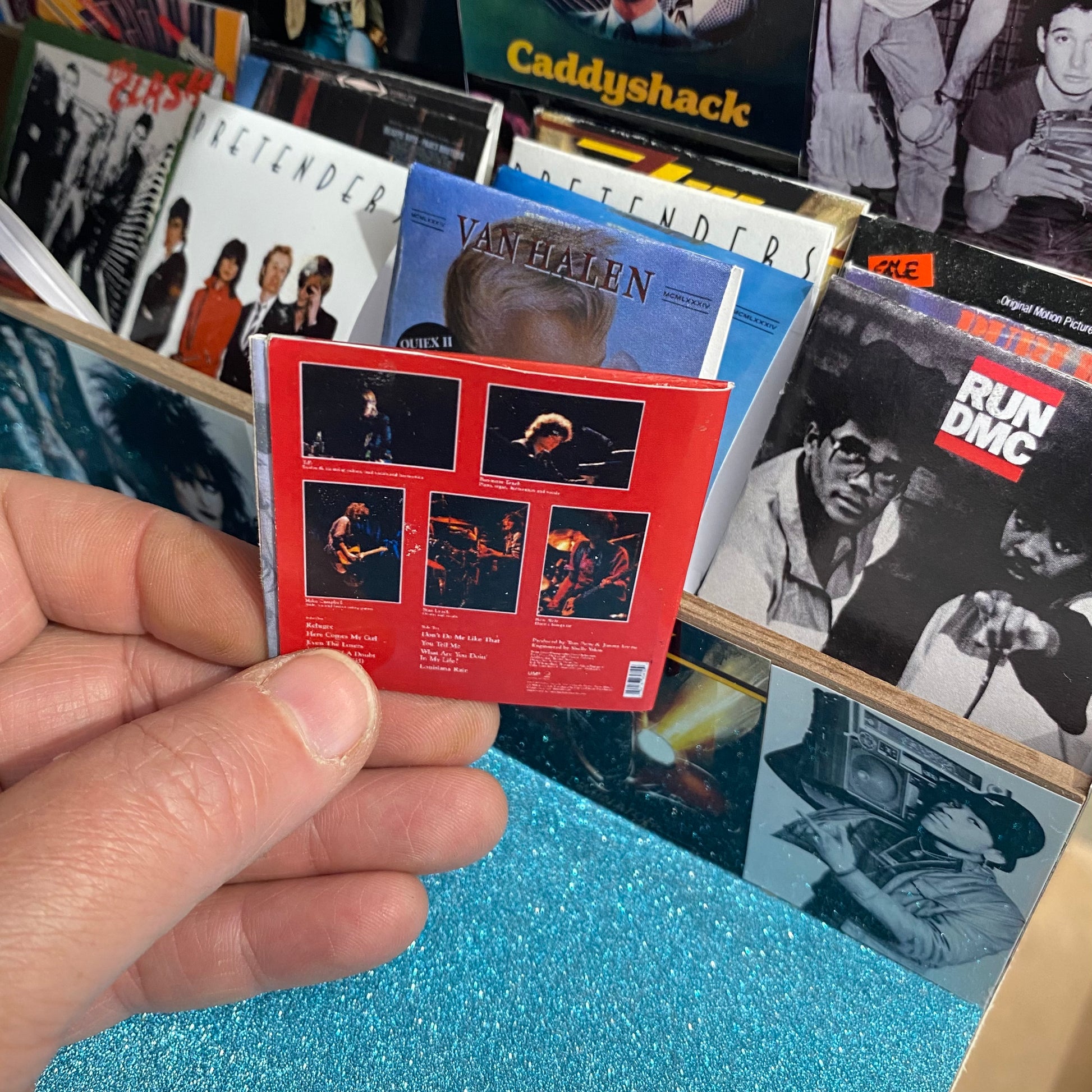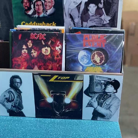Making our personal favorites, choose yours from a variety. Each 2" album cover comes with a white inner sleeve and a vinyl record. Each record is labeled on both sides, coordinating with the album title. Album covers are made of archival ink on cardstock. Sleeves are made of paper. Vinyls are laser cut and engraved thin acrylic. Labels are archival ink on paper. Order 7 albums and we will include am 8th for free.