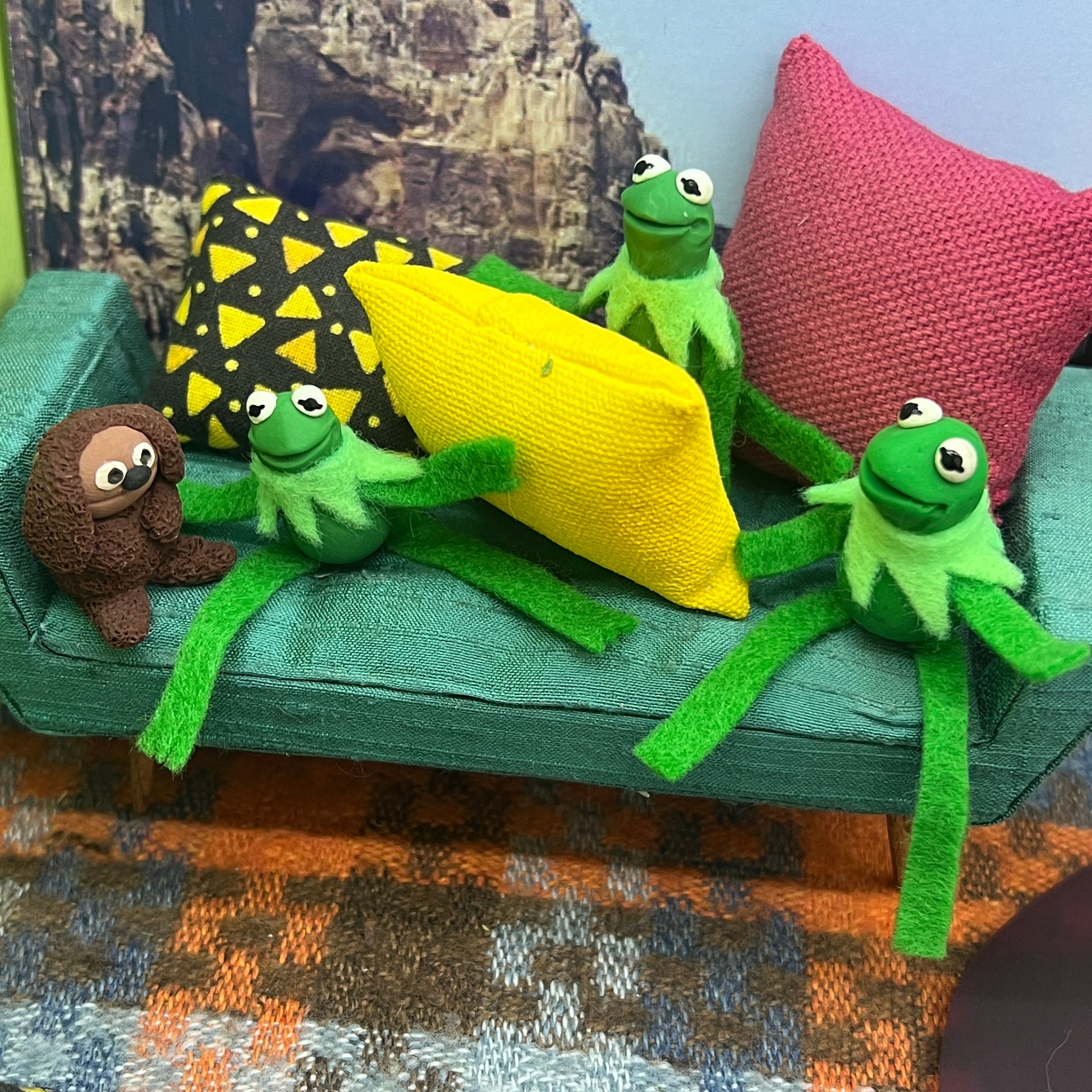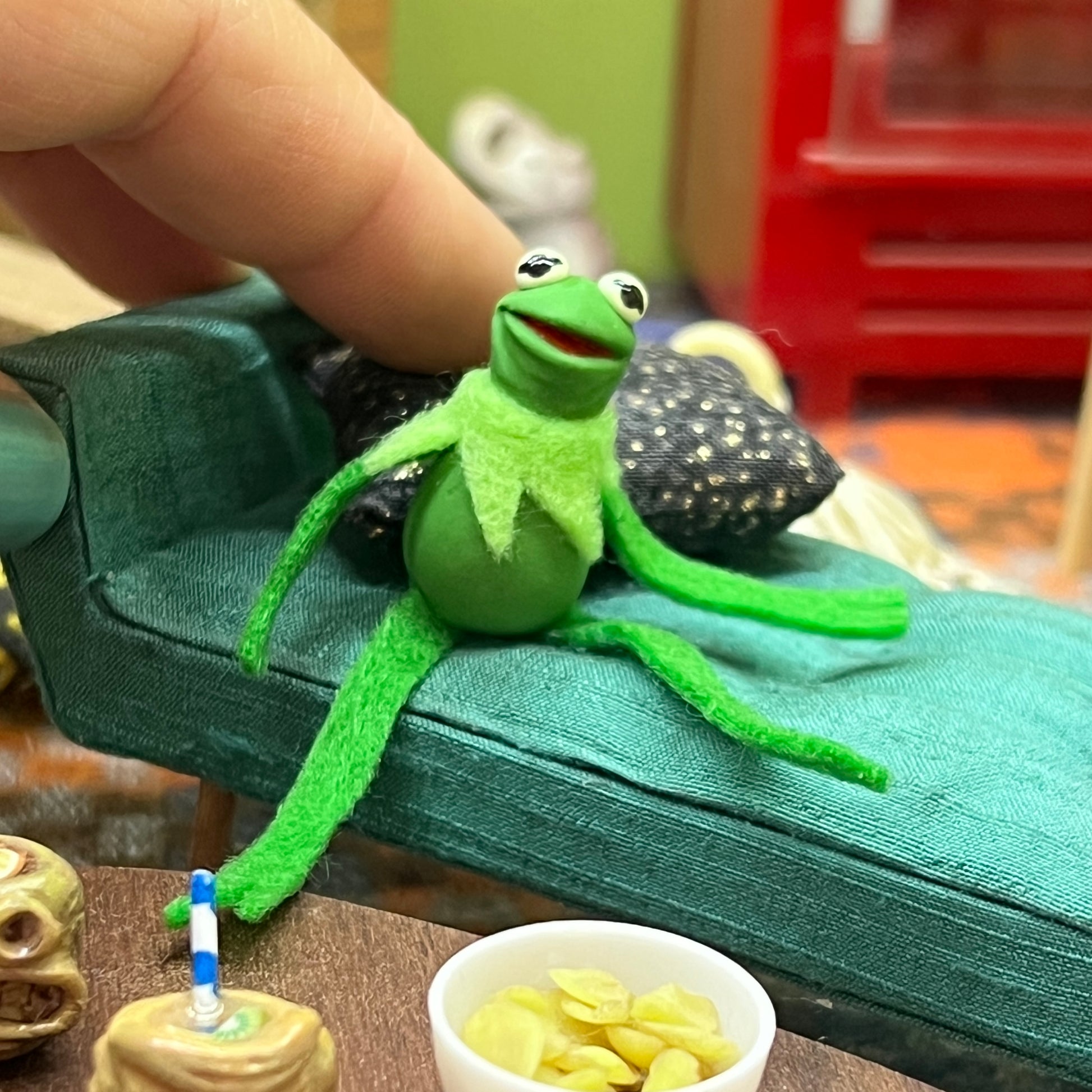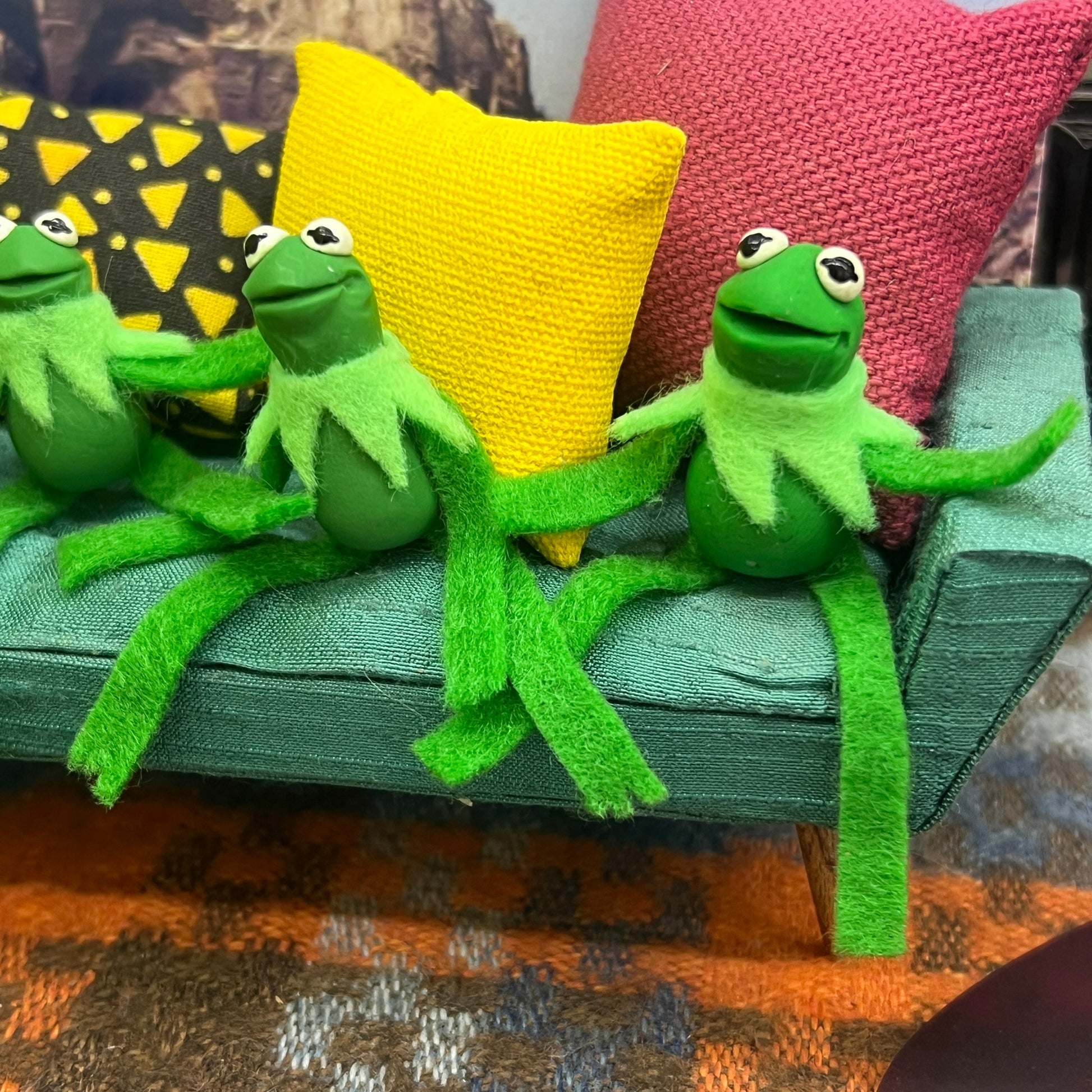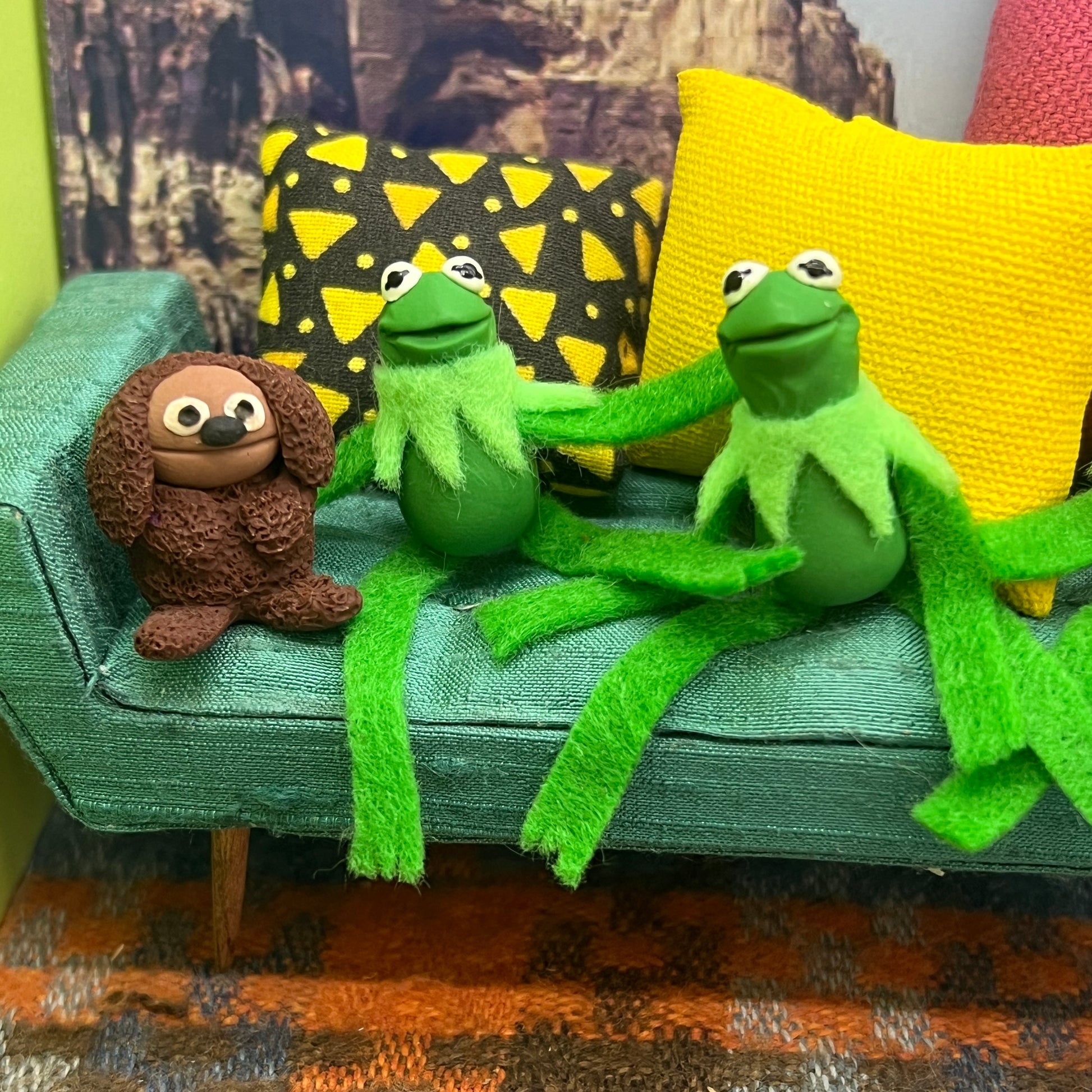 These friendlies are each one-of-a-kind homages to the Muppets. Rowlf is made of polymer clay and paint. Kermit is clay, paint, and felt. Choose your favorite. Kermits are numbered left to right in the 'options'.